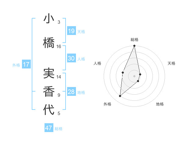 小橋 実香代さんを姓名の画数から五運を鑑定