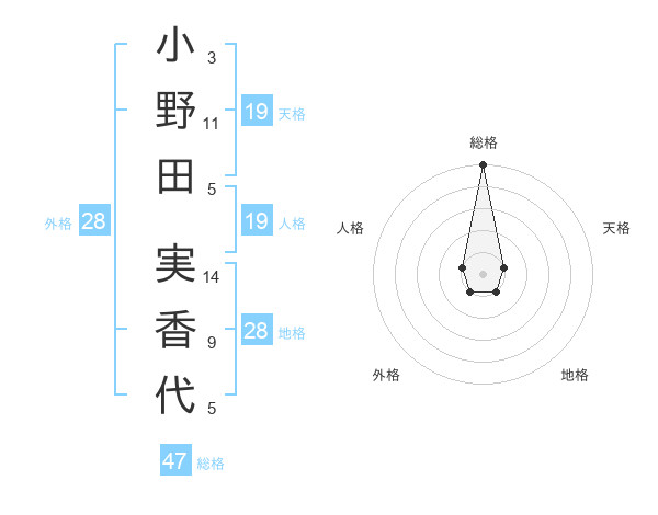 小野田 実香代さんを姓名の画数から五運を鑑定