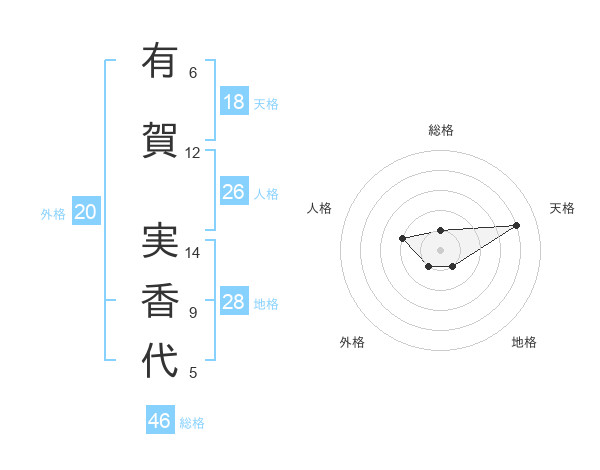 有賀 実香代さんを姓名の画数から五運を鑑定