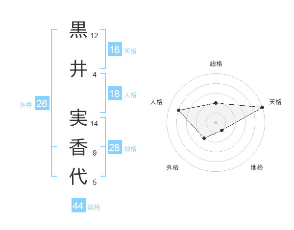 黒井 実香代さんの総格は44画の2点!