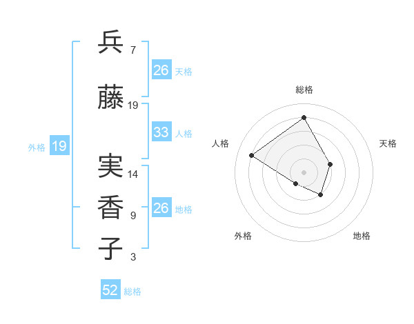 兵藤 実香子さんを姓名の画数から五運を鑑定