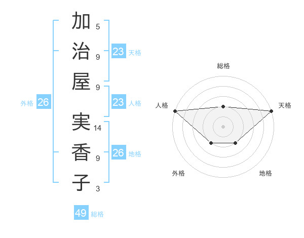 加治屋 実香子さんを姓名の画数から五運を鑑定