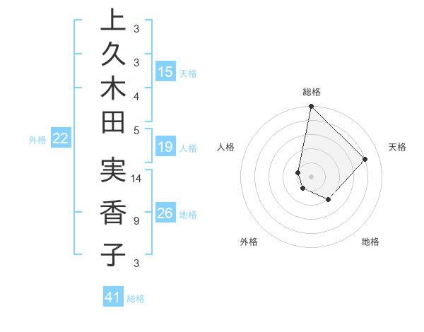 上久木田 実香子さんを姓名の画数から五運を鑑定