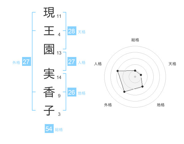 現王園 実香子さんを姓名の画数から五運を鑑定
