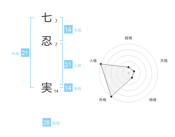 七忍 実さんの外格は21画の5点!