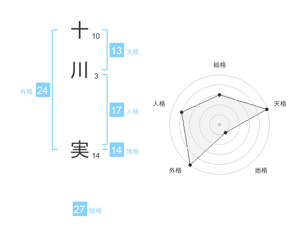 十川 実さんの天格は13画の5点!