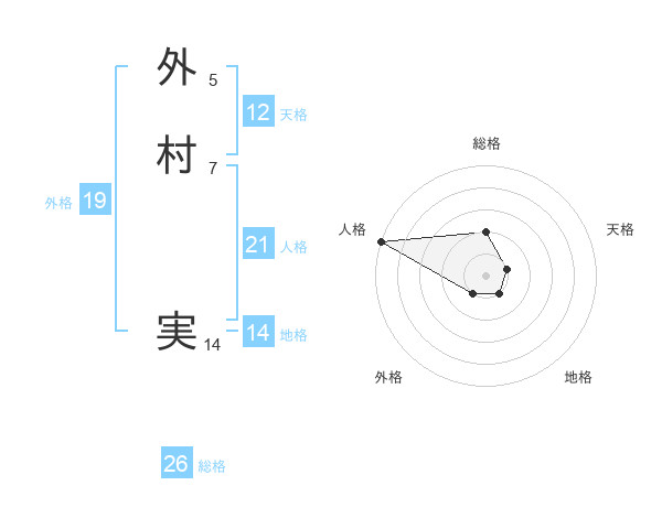 外村 実さんの総格は26画の2点!