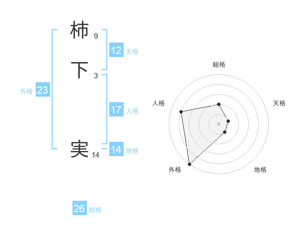 柿下 実さんの総格は26画の2点!