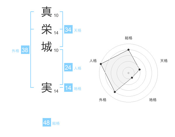 真栄城 実さんの外格は38画の4点!