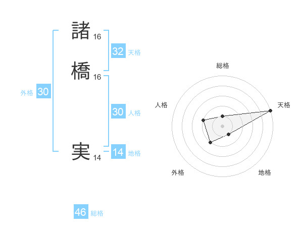 諸橋 実さんの天格は32画の5点!