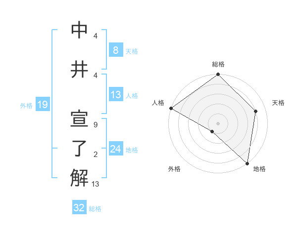 中井 宣了解さんを姓名の画数から五運を鑑定