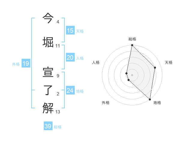 今堀 宣了解さんの地格は24画の5点!