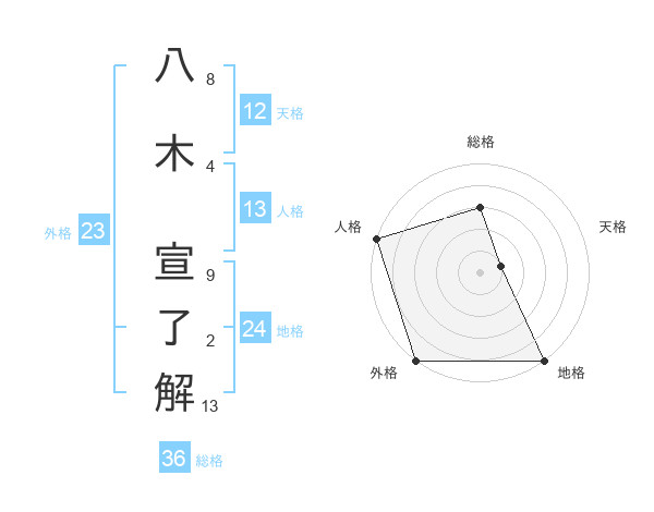 八木 宣了解さんを姓名の画数から五運を鑑定