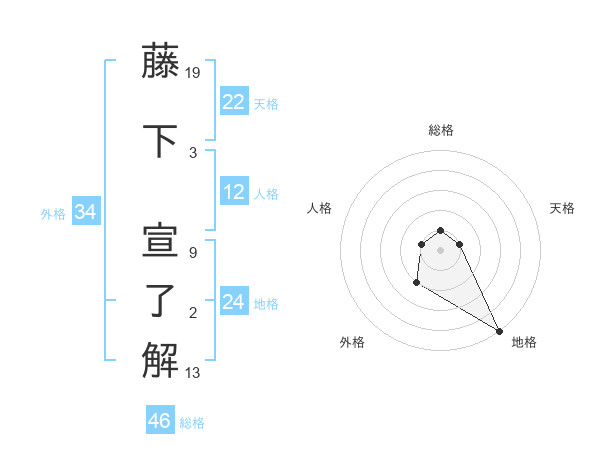 藤下 宣了解さんの地格は24画の5点!