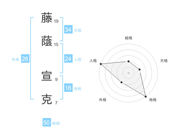 藤蔭 宣克さんを姓名の画数から五運を鑑定
