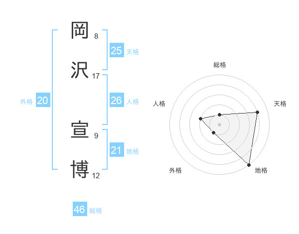 岡沢 宣博さんの天格は25画の4点!
