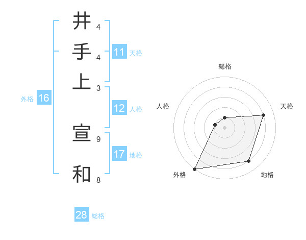 井手上 宣和さんを姓名の画数から五運を鑑定