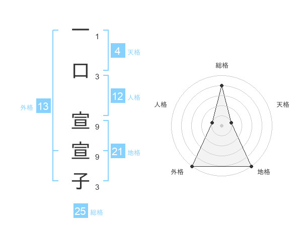 一口 宣宣子さんを姓名の画数から五運を鑑定