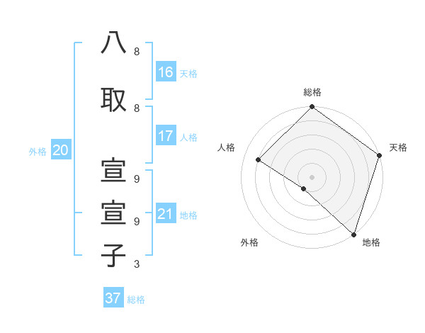 八取 宣宣子さんを姓名の画数から五運を鑑定