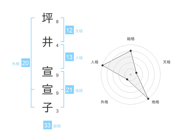 坪井 宣宣子さんの総格は33画の4点!