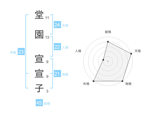 堂園 宣宣子さんを姓名の画数から五運を鑑定