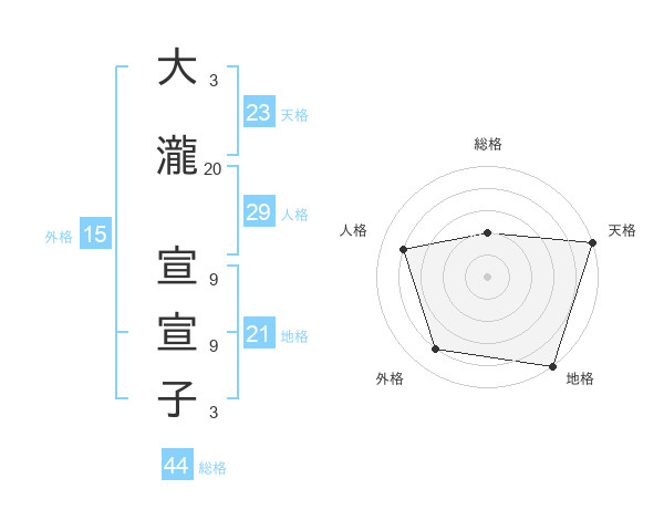 大瀧 宣宣子さんを姓名の画数から五運を鑑定