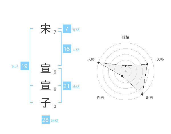 宋 宣宣子さんの総格は28画の1点!
