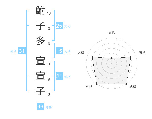 鮒子多 宣宣子さんの外格は31画の5点!