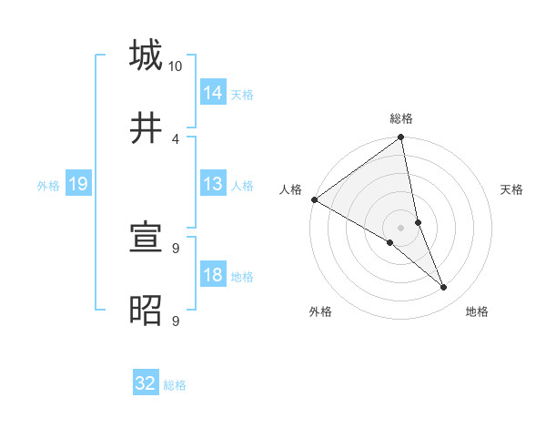 城井 宣昭さんの総格は32画の5点!