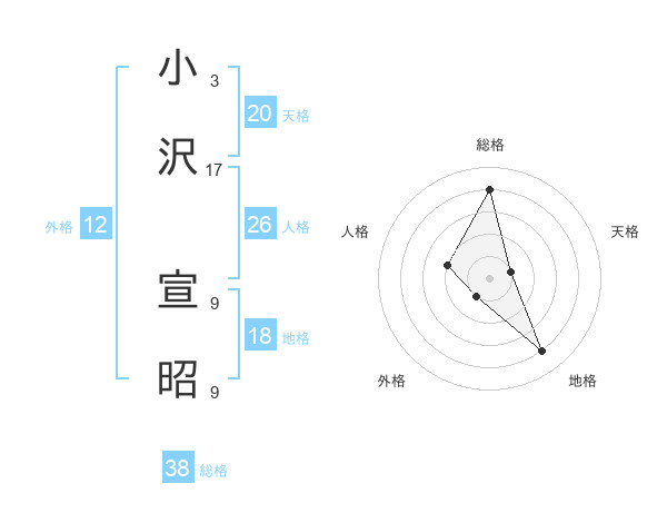 小沢 宣昭さんの天格は20画の1点!