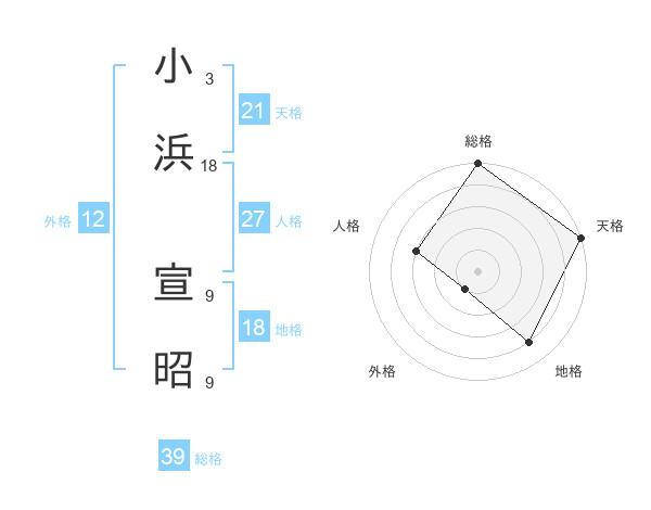 小浜 宣昭さんを姓名の画数から五運を鑑定