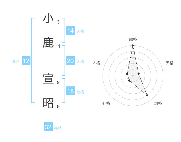小鹿 宣昭さんの総格は32画の5点!