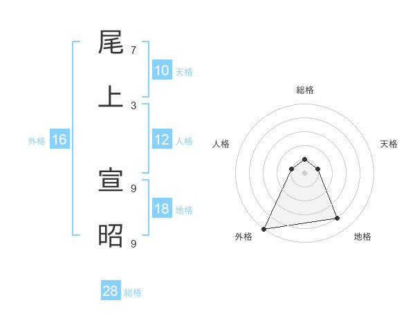 尾上 宣昭さんの天格は10画の1点!