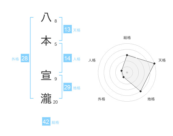 八本 宣瀧さんを姓名の画数から五運を鑑定