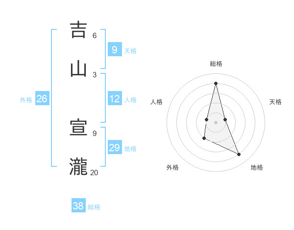 吉山 宣瀧さんの総格は38画の4点!