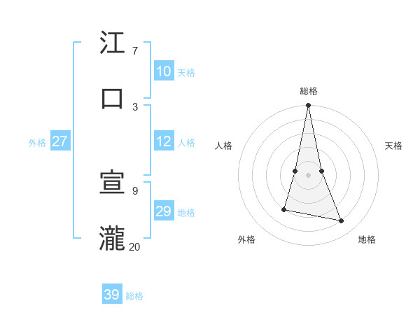 江口 宣瀧さんの総格は39画の5点!
