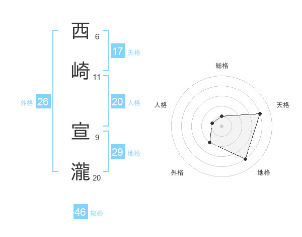 西崎 宣瀧さんを姓名の画数から五運を鑑定