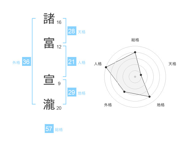 諸富 宣瀧さんの総格は57画の4点!