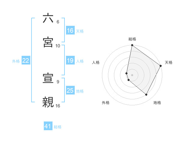 六宮 宣親さんを姓名の画数から五運を鑑定