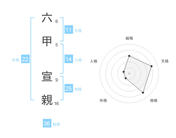 六甲 宣親さんの外格は22画の1点!