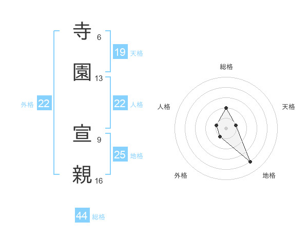 寺園 宣親さんの総格は44画の2点!