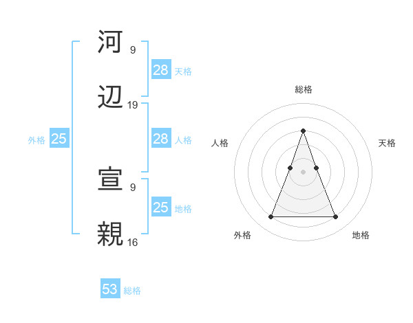 河辺 宣親さんを姓名の画数から五運を鑑定