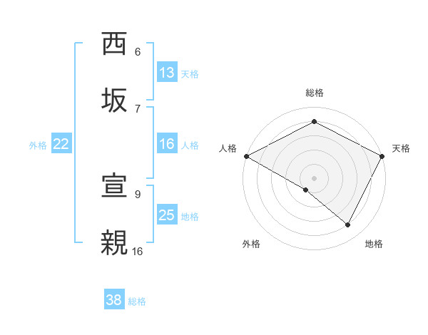 西坂 宣親さんを姓名の画数から五運を鑑定