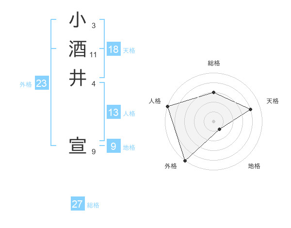 小酒井 宣さんの総格は27画の3点!