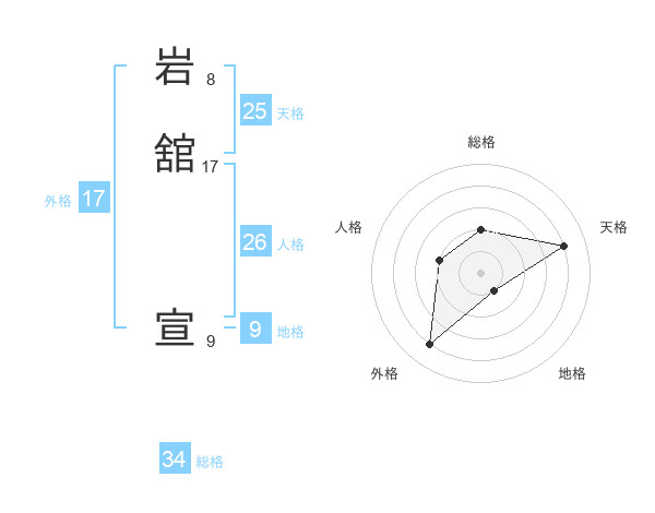 岩舘 宣さんを姓名の画数から五運を鑑定