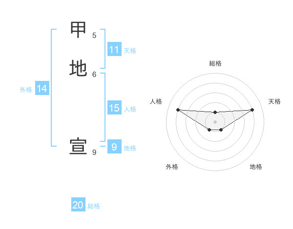 甲地 宣さんの総格は20画の1点!