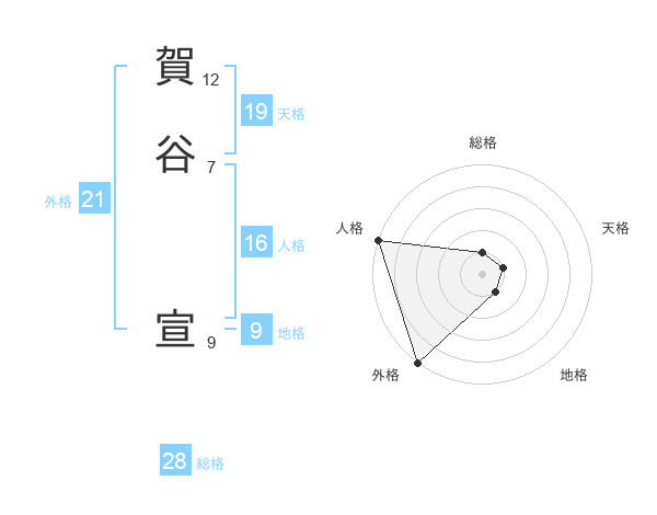 賀谷 宣さんの外格は21画の5点!