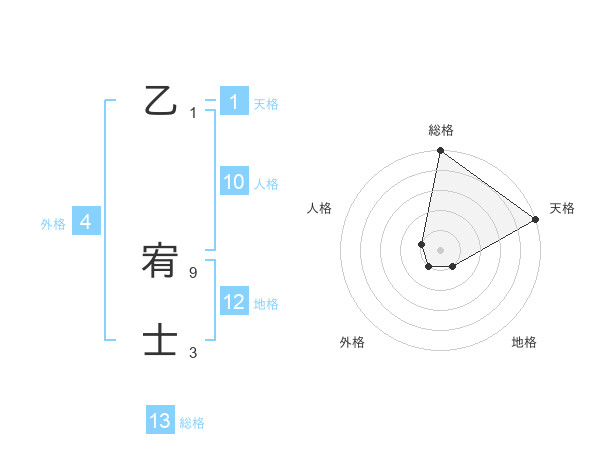 乙 宥士さんの総格は13画の5点!