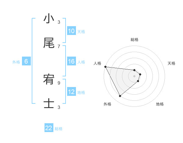 小尾 宥士さんの総格は22画の1点!