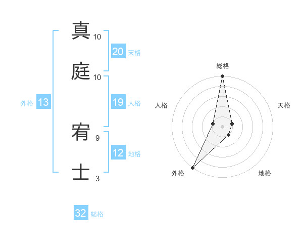 真庭 宥士さんの総格は32画の5点!